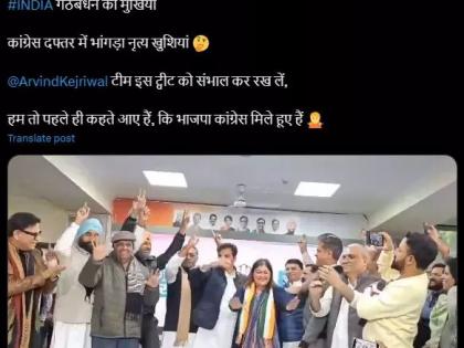 एका युजरने ट्विटरवर व्हिडिओ शेअर केला आणि दावा केला की दिल्लीतील भाजपच्या विजयाचा आनंद साजरा करण्यासाठी काँग्रेस कार्यालयात भांगडा नृत्य सादर केले जात आहे.