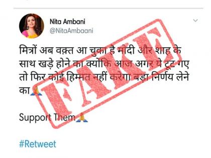 CAA Protest : मोदी-शाह समर्थनाची 'ती' ट्विट नीता अंबानींची नाहीत!