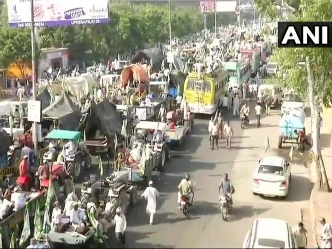 भारतीय किसान युनियनच्या झेंड्याखाली किसान क्रांती पदयात्रेचे आयोजन करण्यात आले होते. ही पदयात्रा आज सकाळी राजधानी नवी दिल्लीच्या उंबरठ्यावर पोहोचली. मात्र या आंदोलनकर्त्या शेतकऱ्यांना राजधानीत प्रवेश करण्याची परवानगी देण्यात आलेली नाही. शेतकऱ्यांना रोखण्यासाठी पोलिसांनी चोख बंदोबस्त केला असून, राजधानीत प्रवेश करणाऱ्या प्रत्येक वाहनाची कसून तपासणी केली जात आहे. त्यामुळे सीमेवरील रस्त्यांवर वाहनांच्या रांगा लागल्या आहेत.