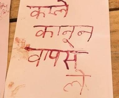 शेतकऱ्यांनी रक्तानं लिहीली पंतप्रधान मोदींना पत्रं, कृषी कायदे रद्द करण्याची मागणी