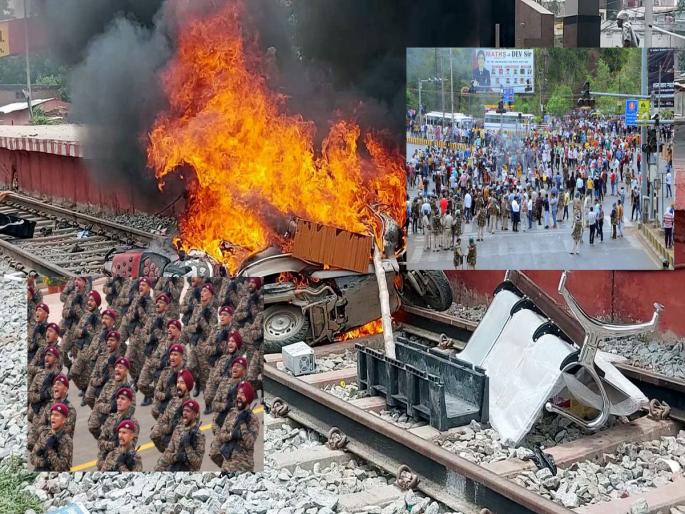 बिहार : 12 रेल्वे जाळल्याबिहारमध्ये अनेक ठिकाणी आंदोलकांनी १२ रेल्वे जाळल्या. लखीसरायमध्ये दोन रेल्वेंना आग लावण्यात आली. मुजफ्फरपूर- भागलपूर इंटरसिटीच्या एका प्रवाशाचा मृत्यू झाला. ज्या रेल्वेला आग लावली त्यात हा प्रवासी होता. आग लावण्यात आलेल्या रेल्वेमध्ये विक्रमशिला, लोहित, मुजफ्फरपूर, भागलपूर इंटरसिटी, बिहार संपर्क क्रांती, इस्लामपूर- हटिया एक्स्प्रेस, फरक्का एक्स्प्रेस, मालदा आदींचा समावेश आहे.