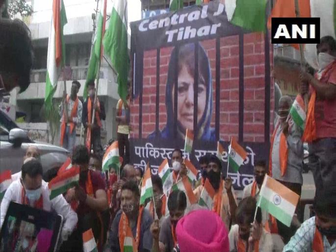 जम्मू काश्मीर प्रकरणी पाकिस्तानसोबत चर्चा करण्याचं वक्तव्य मेहबूबा मुफ्ती यांनी केलं होतं. याच्याच विरोधात गुरूवारी डोगरा फ्रन्टच्या लोकांनी या ठिकाणी विरोधात निदर्शने केली. यावेळी डोगरा फ्रन्टच्या लोकांनी मेहबुबा मुफ्तींच्या विरोधात घोषणाबाजी केली, तसंच त्यांना तुरुंगात पाठवण्याचीही मागणी केली.