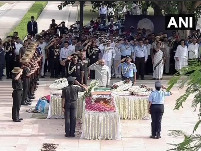 राष्ट्रपती राष्ट्रपती रामनाथ कोविंद, पंतप्रधान नरेंद्र मोदी, माजी पंतप्रधान मनमोहनसिंह, लालकृष्ण आडवाणी, अमित शहा आणि तिन्ही सेनादल प्रमुखांनी पुष्पचक्र अर्पण केले. तसेच, त्यांना 300 जवानांनी अखेरची मानवंदना दिली. अनेक पक्षांचे नेते, भाजप कार्यकर्ते, विविध क्षेत्रातील मान्यवरांनी त्यांचे अंत्यदर्शन घेतले.