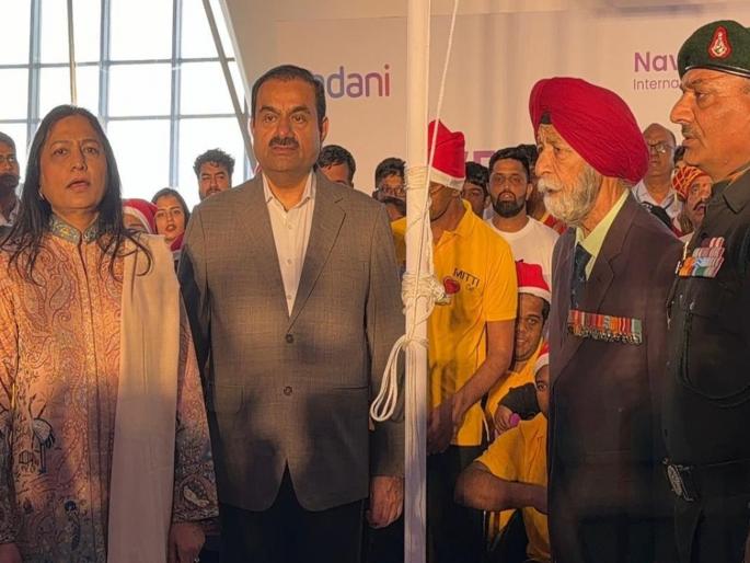 नवी मुंबई विमानतळावर गौतम अदानी यांनी केलं पहिल्या प्रवाशांचं स्वागत