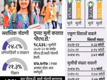 - पदव्युत्तर शिक्षणासाठी समाजविज्ञान शाखेत सर्वाधिक ५६.६% मुलींनी नाेंदणी केली आहे.