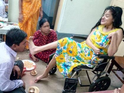 भाऊबीजेला आणि रक्षाबंधनाला ती आपल्या भावाला कधीच ओवाळू शकत नव्हती. याची कायम त्या दोघांना खंत असते. त्यामुळे तिने यावर्षी आपल्या पायानेच भावाचं औक्षण केलं आणि पायानेच त्याला आर्शिवादही दिला. तिचा भाऊ सम्राट बासू याने फेसबूकवर हा फोटो शेअर केला. क्षणार्धात या फोटोवर कमेंट आणि लाइक्सचा पाऊस पडला.