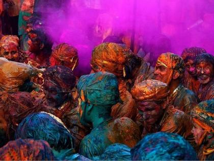 तसंच तेथील मथुरा येथे मोठ्या प्रमाणावर होळी खेळली जाते. रस्तेच्या रस्ते आणि माणसंच्या माणसं रंगांत माखलेली दिसतात. या फोटोंवरून तुम्हाला त्याची कल्पना येईलच.