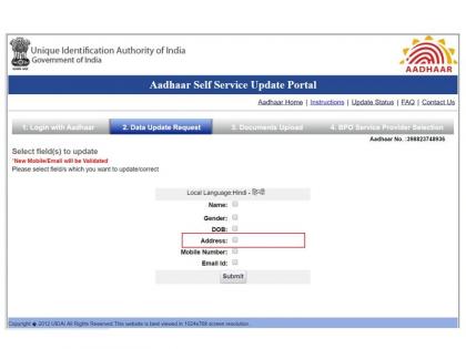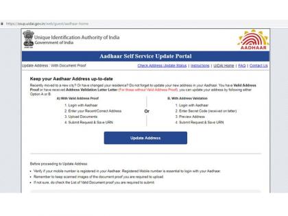 2. यानंतर तुमच्यासमोर एक नवीन टॅब ओपन होईल. ज्यामध्ये काही निर्देशांसहीत अपडेट अॅड्रेसचा पर्याय मिळेल. अॅड्रेस अपडेटसाठी सर्वात महत्त्वाचे म्हणजे आधार कार्डसोबत जोडण्यात आलेला मोबाइल क्रमांक तुमच्याजवळ असणं आवश्यक आहे. कारण याच क्रमांकावर अपडेटसाठी ओटीपी पाठवण्यात येईल.