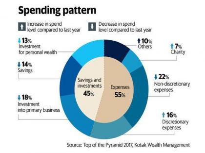 गर्भश्रीमंत लोकं आपल्या मासिक उत्पन्नाच्या 45 टक्के सेविंग्स आणि इन्व्हेस्टमेंट करतात, तर 55 टक्के खर्च करतात.