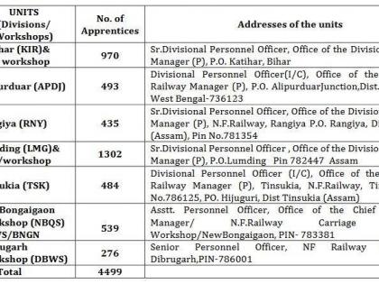 एनएफआर (Northeast Frontier Railway) डिव्हिजनमध्ये ही भरती केली जाणार आहे. या भरतीसाठी रेल्वे रिक्रुटमेंट सेल (RRC) द्वारे अधिकृत नोटिफिकेशन जारी करण्यात आले आहे. यानुसार 16 ऑगस्टपासून अर्ज भरण्याची प्रक्रिया सुरु करण्यात आली आहे.