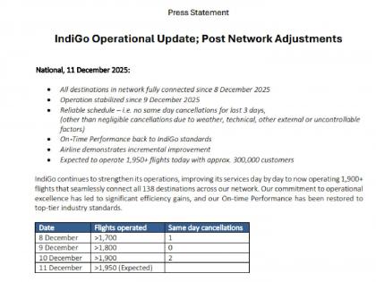 इंडिगोने लिहिले की, आमच्या ग्राहकांची काळजी घेणे हे आमचे सर्वोच्च प्राधान्य आहे. याचाच एक भाग म्हणून, कामकाजात झालेल्या व्यत्ययानंतर आम्ही रद्द झालेल्या विमानांसाठी सर्व आवश्यक परतावे सुरू केले आहेत. त्यापैकी बहुतेक परतावे ग्राहकांच्या खात्यांमध्ये जमा झाले आहेत आणि उर्वरित लवकरच जमा होतील. जर बुकिंग ट्रॅव्हल पार्टनर प्लॅटफॉर्मद्वारे केले असेल, तर तुमच्या परताव्यासाठी आवश्यक कार्यवाही देखील सुरू करण्यात आली आहे. आमच्या सिस्टीममध्ये तुमच्याकडे संपूर्ण तपशील नसल्यामुळे, आम्ही तुम्हाला विनंती करतो की तुम्ही आम्हाला customer.experience@goindigo.in वर माहिती द्यावी, जेणेकरून आम्ही तुम्हाला त्वरित मदत करू शकू.