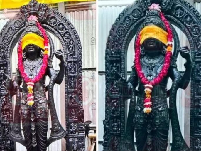 नवी दिल्ली: अयोध्येतील राम मंदिराच्या गर्भगृहात बसवलेल्या रामललाच्या मूर्तीचे काही फोटो समोर आले आहेत. या फोटोमध्ये रामललाचे संपूर्ण रूप पाहायला मिळते. तसेच रामललाच्या डोळ्यांवर पट्टी बांधली असून फुलांचा हार घालण्यात आला आहे. २२ जानेवारीला राम लल्लाला अभिषेक केला जाईल, त्यानंतर डोळ्यांची पट्टी काढली जाईल. २३ जानेवारीपासून सर्वसामान्यांनाही मंदिरात जाता येणार आहे.
