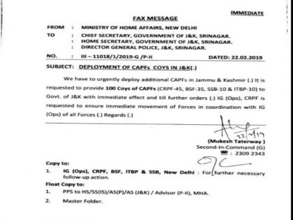दुसरीकडे, केंद्र सरकारने कायदा आणि सुव्यवस्थेचा प्रश्न निर्माण होऊ नये म्हणून काश्मीर खोऱ्यात सुरक्षा दलाच्या अतिरिक्त 100 तुकड्या तैनात करण्यात आल्या आहेत. यामध्ये 45 सीआरपीएफ, 35 बीएसएफ, 10 एसएसबी आणि 10 आयटीबीपी या अर्धसैनिक दलाच्या तुकड्यांचा समावेश आहे.