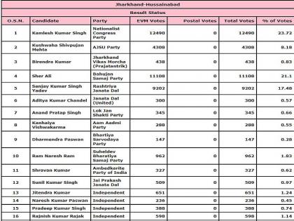 झारखंडमधील हुसैनाबाद मतदारसंघात चौरंगी लढतीत राष्ट्रवादीचे उमेदवार कमलेश कुमार सिंह यांनी आघाडी घेतली आहे. त्यामुळे झारखंडमध्ये राष्ट्रवादी खाते उघडणार का याकडे सर्वांचे लक्ष लागले आहे.