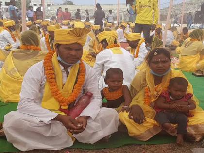 रांची -झारखंडमधील (Jharkhand) खुंटी (khunti) येथे लिव्ह इन रिलेशनशीपमध्ये राहणारे 105 जोडपे (couples ) आज वैवाहिक बंधनात अडकले. गरीबीमुळे या जोडप्यांची लग्न करण्याची आणि लोकांना भोजन देण्याची परिस्थिती नव्हती. समाजाज 'ढुकू' म्हणून या लोकांचा तिरस्कार केला जातो. मात्र, आता हे जोडपे विवाहाच्या बंधनात अडकल्याने त्यांना सामाजिक न्याय मिळाला आहे. राज्यपाल द्रोपदी मुर्मू आणि केंद्रीय सचिव एन एन सिन्हा यांनी या जोडप्यांना आशीर्वाद दिले. या लग्न सोहळ्याला डीसी आणि एसपींसह सर्वच प्रशासकीय अधिकारी उपस्थित होते. सरना पद्धतीने हा विवाह सोहळा पार पडला. (Jharkhand live in relationship 105 couples in marital bondage in khunti)