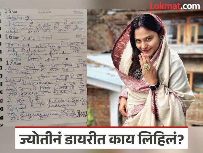 डायरीत काय लिहिले आहे?ज्योतीने तिच्या डायरीत पाकिस्तानच्या प्रवासाबद्दल सांगताना लिहिले की, "पाकिस्तानचा १० दिवसांचा दौरा पूर्ण केल्यानंतर, आज मी माझ्या देशात भारतात परतत आहे. सीमांमधील अंतर किती काळ राहील हे मला माहित नाही, पण मी प्रार्थना करते की सगळ्यांच्या मनातील अढी दूर व्हाव्यात. आपण सर्व एकाच मातीपासून बनलेले आहोत, एकाच भूमीचे लोक आहोत."