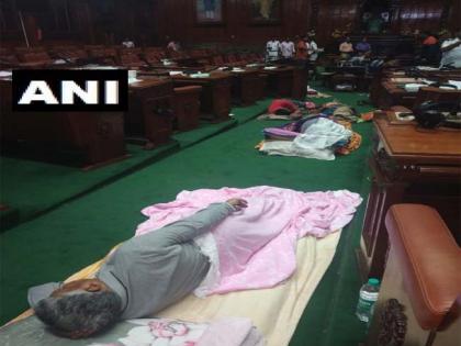 कर्नाटक : उशी आणि बेडसीट घेऊन विधानसभेत पोहोचले भाजपाचे आमदार