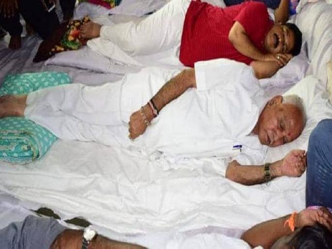 शुक्रवारपासून बंगळुरुतील आनंदराव सर्कलजवळ भाजपाने जिंदल ग्रुपला 3 हजार 667 एकर जमीन दिल्याच्या विरोधात आंदोलन पुकारले आहे. या आंदोलनात माजी मुख्यमंत्री येडियुरप्पा यांच्यासोबत आमदार गोविंद करजोल, माजी उपमुख्यमंत्री आर. अशोक आणि खासदार उमेश जाधव यांनी सहभाग घेतला आहे. काल दिवसभर भाजपाच्या कार्यकर्त्यांसोबत आंदोलन केल्यानंतरही या नेत्यांनी आंदोलनस्थळी रात्रभर झोपून आपले आंदोलन आजच्या दुसऱ्या दिवशीही सुरुच ठेवले आहे.