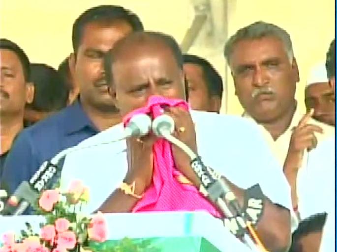 कर्नाटकातीलमंड्या येथील जाहीर सभेत बोलताना कुमारस्वामी भावूक झाले. माझा मुख्यमंत्रीपदाचा शेवटचा दिवस आहे. माझ्याबद्दल चुकीच्या बातम्या पसरवल्या जात आहेत अशाप्रकारे प्रचार विरोधकांकडून केला जातोय असा आरोप त्यांनी केला. मंड्या लोकसभा मतदारसंघातून एच डी कुमारस्वामी यांचे चिरंजीव निखील कुमारस्वामी निवडणूक लढवत आहेत. यामुळेच जेडीएस सर्व ताकदीने या मतदारसंघात निवडणूक लढवत आहे. याआधीही कुमारस्वामी अनेकदा मतदारांसमोर भावूक झाल्याचं पाहायला मिळालं आहे. काही दिवसांपूर्वीचे कुमारस्वामी यांचे वडील आणि माजी पंतप्रधान एच डी देवगौडा यांनाही माध्यमासमोर रडू कोसळले होते.