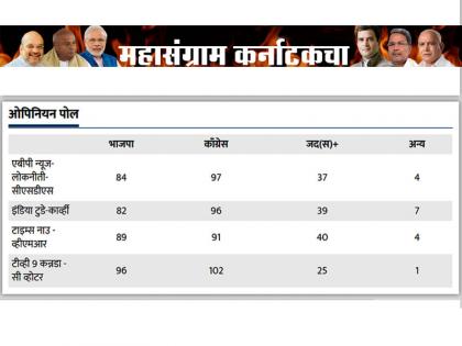 >> माजी पंतप्रधान देवेगौडा यांचा जद(ध) 'किंगमेकर' ठरण्याचा ओपिनियन पोलचा अंदाज