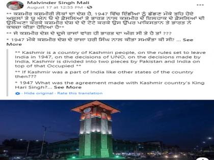 सिद्धूंचे सल्लागार मालविंदर सिंग मालीने ट्व एका पोस्टद्वारे हे वादग्रस्त वक्तव्य केलं आहे. त्यांनी लिहिले, 'काश्मीर हा काश्मीरी लोकांचा देश आहे. 1947 मध्ये भारत सोडण्याच्या वेळी झालेल्या करारानुसार आणि युनोच्या निर्णयाचं उल्लंघन करुन काश्मीर देशाचे दोन तुकडे झाले, ज्यावर आता पाकिस्तान आणि भारतानं कब्जा केला आहे.'