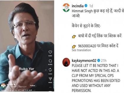 काँग्रेसच्या या व्हिडिओबाबत स्पष्टीकरण देताना केके मेनन म्हणाला की, "मी या जाहिरातीत काम केलेले नाही. माझी स्पेशल ऑप्स वेब सीरिजची क्लिप परवानगीशिवाय एडीट करुन वापरण्यात आली आहे." आता त्याच्या स्पष्टीकरणावर नेटकऱ्यांच्या संमिश्र प्रतिक्रियाही येत आहेत. काही जण म्हणत आहेत की, ही फार मोठी गोष्ट नाही, त्याकडे दुर्लक्ष करा. तर, काही जण म्हणत आहेत, एखाद्या अभिनेत्याच्या परवानगीशिवाय पक्ष त्याचा व्हिडिओ कसा वापरू शकतो.