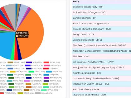 २०१९ च्या तुलनेत यावेळी भाजपाला ६८.९७ लाख अधिक मतं मिळाली आहेत. मात्र भाजपाच्या मतांचा टक्का मात्र किंचीत घटला आहे. २०१९ मध्ये भाजपाला ३७.७ टक्के मतं मिळाली होती. मात्र आता हा आकडा ०.७ टक्क्यांनी घटून ३६.६ टक्क्यांवर आला आहे. मात्र केवळ ०.७ टक्क्यांनी घटलेल्या मतदानामुळे भाजपाच्या २०१९ च्या तुलनेत तब्बल २० टक्के जागा कमी झाल्या आहेत. २०१९ मध्ये भाजपाने ३०३ जागा जिंकल्या होत्या. मात्र आता हा आकडा घटून २४० वर आला आहे.