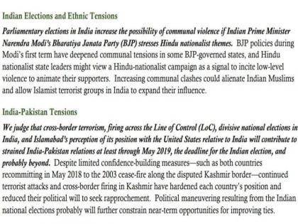 अमेरिकी सिनेटला सोपवण्यात आलेल्या अहवालात ही माहिती देण्यात आली आहे. भाजपानं निवडणुकीपूर्वी हिंदू राष्ट्राच्या मुद्द्यावर जोर दिल्यास देशात सांप्रदायिक दंगली भडकतील, असा दावा या अहवालात करण्यात आला आहे. रिपोर्टनुसार, अमेरिकी सिनेटच्या निवड समितीसमोर हा अहवाल ठेवण्यात आला आहे. जो सीआयए या गुप्तचर विभागाचे संचालक डेन कोट्स यांनी तयार केला आहे.