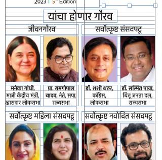 यंदाच्या ‘लोकमत’ संसदीय पुरस्कारांसाठी आठ वेगवेगळ्या श्रेणींमध्ये राज्यसभेतील समाजवादी पक्षाचे नेते प्रा. रामगोपाल यादव, बिजू जनता दलाचे डॉ. सस्मित पात्रा, भाजपच्या सरोज पांडे आणि माकपचे जॉन ब्रिटास तसेच लोकसभेतील खासदार डॉ. शशी थरुर, माजी केंद्रीय मंत्री मनेका गांधी, अकाली दलाच्या हरसिमरत कौर बादल आणि बसपचे कुंवर दानिश अली यांची २०२३ मधील त्यांच्या योगदानासाठी निवड करण्यात आली आहे.