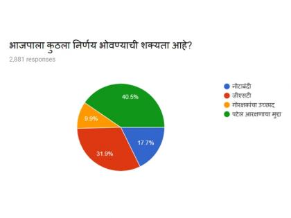 पंतप्रधान नरेंद्र मोदींसह भाजपची प्रतिष्ठापणाला लागलेल्या आणि राहुल गांधी यांच्याकडे आलेल्या काँग्रेस अध्यक्षपदाच्या जबाबदारीमुळे गुजरात विधानसभा निवडणुकीच्या निकालाकडे संपूर्ण देशाचं लक्ष लागलं आहे. या पार्श्वभूमीवर लोकमतनं घेतलेल्या पोलमध्ये 39.4 टक्के मतदारांनी भाजपाला 92 पेक्षा कमी जागा मिळतील असे म्हटले आहे. तर 30.9 टक्के जणांनी भाजपाला 93 ते 155 जागा मिळतील असे भाकित केलं आहे. 23.8 टक्के जणांच्या मते भाजपा 116-149 जागा जिंकेल. 5.8 टक्के जणांनी भाजपा 149 पेक्षा आधिक जागा जिंकेल असा कौल दिला आहे. म्हणजे 60.6 टक्के वाचकांनी गुजरातमध्ये पुन्हा कमळ फुलणार असल्याचा अंदाज व्यक्त केला आहे. पाटीदार समाजातील रोष आणि इतर स्थानिक मुद्द्यांचाही काँग्रेसला या निवडणुकीत लाभ होऊ शकतो. असे लोकमतच्या वाचकांनी सांगितलं आहे.
