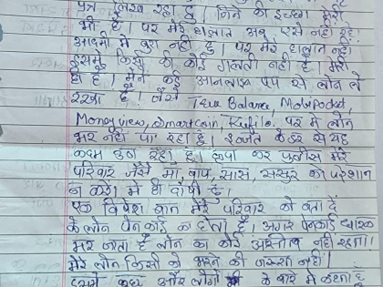 'मला जगण्याची इच्छा आहे, पण माझी परिस्थिती आता अशी राहिली नाही. मी वाईट नाही, पण परिस्थिती तशी पूर्वीप्रमाणे राहिली नाही...मी अनेक ऑनलाइन अॅप्सवरून कर्ज घेतले, पण मला कर्ज फेडता येत नाहीये. कारवाईच्या भीतीने मी हे पाऊल उचलत आहे. पोलिसांनी माझ्या कुटुंबाला त्रास देऊ नये, यासाठी मी एकटाच दोषी आहे.'