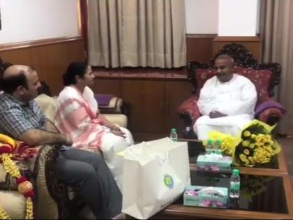#WATCH: West Bengal Chief Minister Mamata Banerjee meets senior BJP leader Lal Krishna Advani in Parliament. #Delhipic.twitter.com/5YbkKDUXj3