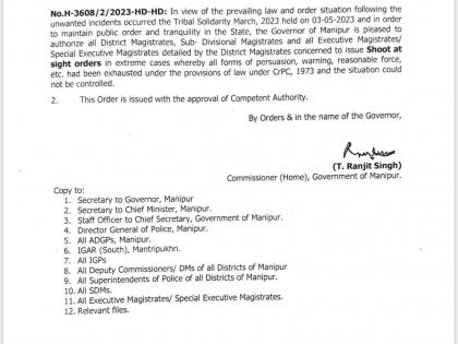'शूट अॅट साईट'च्या ऑर्डरला मणिपूरच्या राज्यपालांनीही मंजुरी दिली आहे.