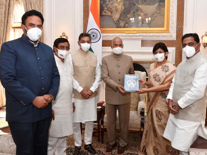 नवी दिल्ली - मराठाआरक्षणावरून गेल्या काही महिन्यांपासून राज्यातील राजकारण चांगलेच तापल्याचे पाहायला मिळत आहे. सर्वोच्च न्यायालयाने मराठाआरक्षण रद्द केल्यानंतर पुन्हा एकदा यावरून आरोप-प्रत्यारोप सुरू झाले आहेत. मराठा आरक्षणप्रश्नी भाजप खासदार संभाजीराजे छत्रपती यांनी आज राष्ट्रपती रामनाथ कोविंद यांची भेट घेतली. त्यावेळी, राज्यातील चारही पक्षाचे प्रमुख खासदार त्यांच्यासमेवत होते. राष्ट्रपतींनीही त्यांची बाजू पूर्णपणे ऐकून घेतली.