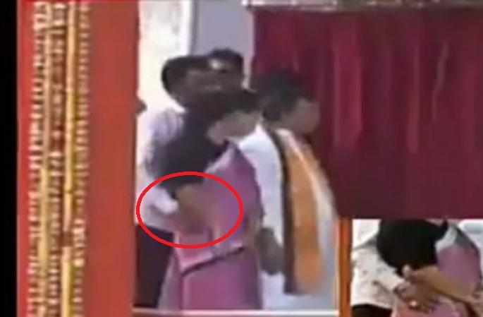 आगरताळा - पंतप्रधान नरेंद्र मोदींची शनिवारी त्रिपुरा येथे जाहीर सभा झाला. त्यावेळी समारंभाचे फलकाचे मोदींच्या हस्ते उद्घाटन झाले. तर, यावेळी मोदींनी भाषणही केलं. या व्यासपीठावर भाजपाच्या मंत्र्याने एका महिला मंत्र्याचा विनयभंग केल्याचा एक व्हिडीओ सोशल मीडियावर व्हायरल होत आहे. या व्हिडीओवरुन भाजपाच्या मंत्र्यांच्या राजीनाम्याची मागणी विरोधकांकडून करण्यात येत आहे. तर भाजपाने हा चरित्रहनन करण्याचा प्रकार असल्याचं म्हटले आहे.