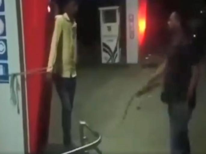 होशंगाबाद: कोणत्याही पूर्वसूचनेशिवाय सुट्टी घेतली म्हणून पेट्रोल पंप चालकानं कर्मचाऱ्याला चाबकानं मारहाण केल्याची घटना मध्यप्रदेशातील होशंगाबादमध्ये घडली आहे. धक्कादायक बाब म्हणजे पेट्रोल पंप चालकानं या अमानुष मारहाणीचा व्हिडीओ तयार केला आहे. होशंगाबादच्या रायपूरचा रहिवासी असलेला अजय अहिरवार शिवनंदी पेट्रोल पंपवर काम करायचा. काही दिवसांपूर्वी अजयचा अपघात झाल्यानं तो कामावर येऊ शकला नाही. त्यामुळे संतापलेल्या पेट्रोल पंप चालकानं त्याला पेट्रोल भरायच्या मशिनला बांधून मारहाण केली. रायपूरला राहणाऱ्या अजयचा काही दिवसांपूर्वी अपघात झाला. त्यामुळे 5 ते 6 दिवस त्याला कामावर येता आलं नाही. अजय कोणतीही पूर्वसूचना न देता कामावर गैरहजर राहिल्यानं पेट्रोल पंप चालक भडकला. चालकानं त्याच्या एका साथीदाराला अजयच्या घरी पाठवलं. त्यानंतर अजयला पेट्रोल पंपवर आणण्यात आलं आणि त्याला पेट्रोल भरण्याच्या मशीनला बांधलं. अजयला चाबकानं बेदम मारहाण करण्यात आली. जवळपास 10 मिनिटं अजयला निर्दयीपणे चाबकानं फोडून काढण्यात आलं. या अमानुष मारहाणीचं चित्रणदेखील पेट्रोल पंप चालकांकडून करण्यात आलं. यानंतर अजयनं कशीबशी स्वत:ची सुटका केली आणि घाबरुन स्वत:च्या गावी निघून गेला.