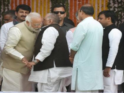 उत्तर प्रदेशचे मुख्यमंत्र्यांच्या शपथविधी सोहळ्यादरम्यान पंतप्रधान मोदी आणि समाजवादी पार्टीचे सर्वेसर्वा मुलायम सिंह यादवांमध्ये झालेल्या गळाभेटीवर मोठ्या प्रमाणात चर्चा झाली होती.