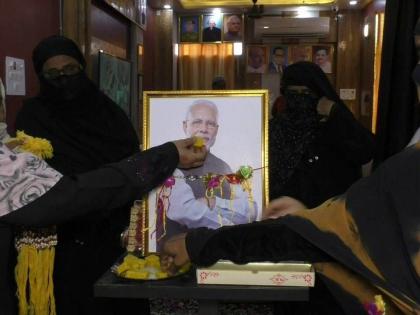 शुक्रिया मोदी भैया : मुस्लीम महिलांनी पंतप्रधान मोदींच्या फोटोला बांधली राखी, 'या'साठी मानले आभार