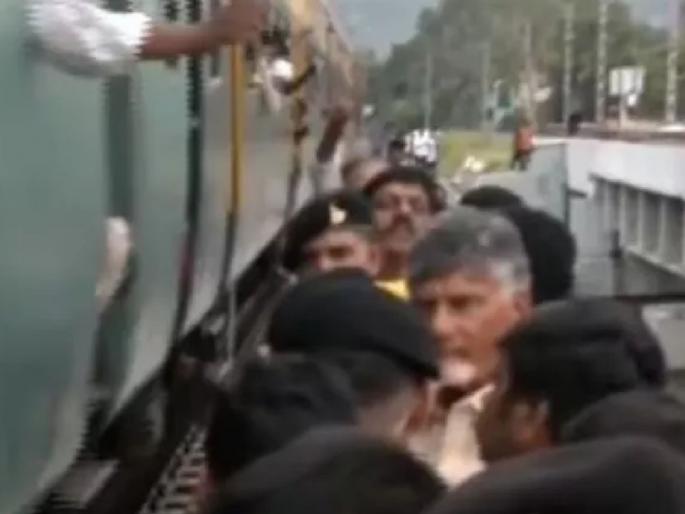 पूरग्रस्त भागाचा दौरा करताना मोदी सरकारचे संकटमोचक, आंध्र प्रदेशचे मुख्यमंत्री एन. चंद्रबाबू नायडू बालबाल बचावले आहेत. रेल्वे ट्रॅकवरून चालत जात असताना अगदी जवळून रेल्वे गेली आहे. याचा व्हिडीओ सोशल मीडियावर व्हायरल होऊ लागला आहे.