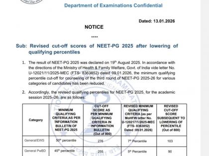 NEET PG Cut Off Criteria: केंद्रीय आरोग्य व कुटुंबकल्याण मंत्रालयाने NEET PG २०२५ च्या क्वालिफाइंग कट-ऑफमध्ये मोठी कपात केल्यानंतर देशभरातून संताप व्यक्त होतोय. या निर्णयामुळे SC, ST आणि OBC प्रवर्गातील उमेदवारांना आता उणे ४०पर्सेंटाइल गुण मिळाले तरीही MS-MD सारख्या पोस्ट ग्रॅज्युएट मेडिकल कोर्सेसमध्ये प्रवेश मिळू शकणार आहे. जनरल आणि EWS प्रवर्गासाठीही कट-ऑफ कमी करण्यात आला आहे.