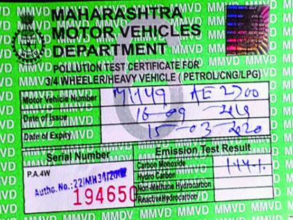 वाहनाची तपासणी करून प्रदूषण नियंत्रण प्रमाणपत्र घेतल्यानंतरच वाहन रस्त्यावर आणता येते.