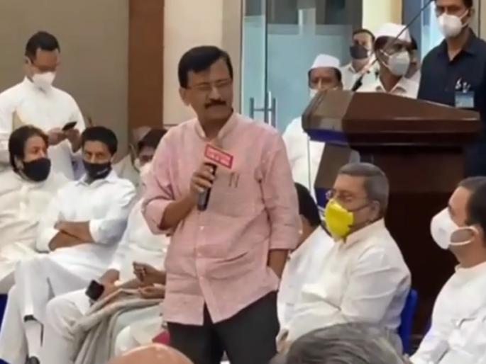 ससंदेच्या पावसाळी अधिवेशनादरम्यान, पेगासस फोन टॅपिंगसह विविध मुद्द्यांवरून विरोधकांनी संसदेचं कामकाज रोखून धरले आहे. त्याच पार्श्वभूमीवर या मुद्द्यांवर चर्चा कऱण्यासाठी राहुल गांधी यांनी आज विरोधी पक्षांमधील विविध नेत्यांची बैठक बोलावली होती. या बैठकीला देशभरातील विविध विरोधी पक्षातील नेत्यांसोबत शिवसेनेचे राज्यसभेतील खासदार संजय राऊत हेसुद्धा उपस्थित होते. संजय राऊत यांचा या बैठकीतील एक व्हिडिओ समोर आला आहे. त्यामध्ये त्यांनी मोदी आम्हाला पाणीही विचारत नाहीत, असे म्हटलंय. 'जर पंतप्रधानांनी चाय पे चर्चासाठी बोलावलं तर अवश्य जाऊ. पण पंतप्रधानांनी आम्हाला बोलवायला हवं. आम्हाला तर कुणी पाणीदेखील विचारत नाही, ते तर सर्वांचे पंतप्रधान आहेत.', असे राऊत या व्हिडिओत बोलताना दिसतात. विशेष बाब म्हणजे शिवसेनेचे प्रतिनिधी म्हणून या बैठकीत सहभागी झालेल्या संजय राऊत यांना या बैठकीत पहिल्या पंक्तीत स्थान देण्यात आले होते. तसेच राहुल गांधी आणि संजय राऊत यांच्यात यावेळी काही काळ अनौपचारिक चर्चाही झाली. तसेच या संवादाचा फोटो काँग्रेसकडून सोशल मीडियावर विशेष करून शेअर करण्यात आल्याने शिवसेना आणि काँग्रेसमधील मैत्री आता अधिक दृढ झाल्याचे संकेत मिळत आहेत.