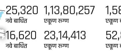 कोरोनाबाधितांचा आकडा वाढताच; रविवारी राज्यात १६ हजार; तर देशभरात २५ हजार रुग्णांची भर