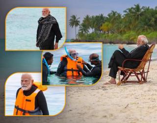 पंतप्रधान नरेंद्र मोदींनी समुद्रात मारली डुबकी, लक्षद्वीप समुद्रकिनाऱ्यावर मारला फेरफटका, पाहा फोटो