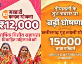 राष्ट्रीय : महिला मतांसाठी रस्सीखेच; काँग्रेसचे वर्षाला १५ हजार, भाजपचे १२ हजार रुपयांचे आश्वासन
