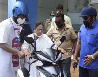 VIDEO: ...इलेक्ट्रिक स्कूटी चलावताना पडता-पडता थोडक्यात बचावल्या ममता बॅनर्जी! सुरक्षा रक्षकांनी असं सावरलं