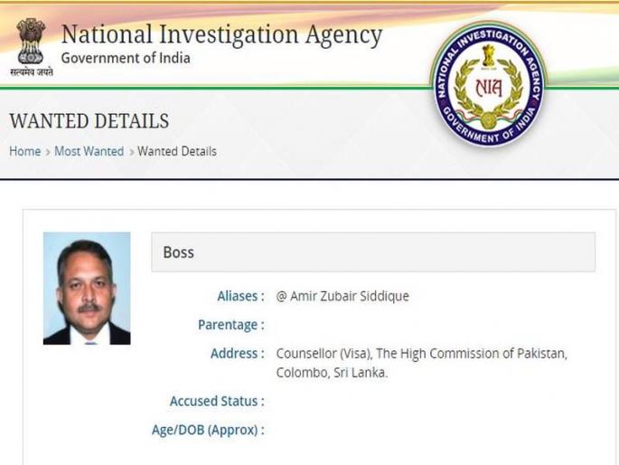 राष्ट्रीय तपास यंत्रणेने (एनआयए) पहिल्यांदाच पाकिस्तानच्या राजनैतिक अधिकाऱ्याचा समावेश वॉन्टेड लिस्टमध्ये केला आहे. या अधिकाऱ्याचा फोटोदेखील एनआयएने जारी केला आहे. आमीर जुबेर सिद्दीकी असे या अधिकाऱ्याचे नाव आहे. सिद्दीकीसोबतच दोन अन्य पाकिस्तानी अधिकाऱ्यांच्या नावांचा समावेशदेखील एनआयएने वॉन्टेड लिस्टमध्ये केला आहे. आमीर जुबेर सिद्दीकी कोलंबोतील पाकिस्तानातील उच्चायुक्तालयात व्हिसा समुपदेशक म्हणून काम करतो. अमेरिका आणि इस्रायलच्या दुतावासांवर २६/११ सारखा हल्ला करण्याची योजना आखल्याचा आरोप सिद्दीकीवर ठेवण्यात आला आहे. याशिवाय दक्षिण भारतातील लष्कराच्या आणि नौदलाच्या तळांवर हल्ल्याचा कट आखण्याचा आरोपदेखील पाकिस्तानी अधिकाऱ्यांवर करण्यात आला आहे. श्रीलंकेतील उच्चायुक्तालयात तैनात असलेला आणखी एक पाकिस्तानी अधिकारीदेखील यामध्ये सहभागी असल्याची माहिती एनआयएने दिली आहे. त्यामुळेच एनआयएने या अधिकाऱ्यांचा समावेश वॉन्टेड लिस्टमध्ये केला आहे. याशिवाय या अधिकाऱ्यांविरोधात इंटरपोलने रेड कॉर्नर नोटीस जारी करावी, अशी मागणीदेखील एनआयएकडून केली जाणार आहे. एनआयएच्या वॉन्टेड लिस्टमध्ये नावाचा समावेश झाल्याने आमीर जुबेर सिद्दीकीला पाकिस्तानने मायदेशी बोलावल्याचे वृत्त आहे. एनआयएने सिद्दीकीविरोधात फेब्रुवारीत आरोपपत्र तयार केले आहे. मात्र इतर तीन अधिकाऱ्यांची ओळख अद्याप पटलेली नाही.