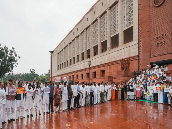 नवी दिल्ली : संसदेत बुधवारी सलग चौथ्या दिवशी गोंधळामुळे कामकाज ठप्प झाले. बिहारमधील मतदारयाद्यांच्या पुनरावलोकनाचा मुद्दा पुन्हा तापला. यावर तत्काळ चर्चा घ्यावी, अशी मागणी विरोधकांनी केली. यादरम्यान प्रश्नोत्तराचा तास सुरू झाला. पेट्रोलियम मंत्री हरदीप पुरी यांनी काही पूरक प्रश्नांची उत्तरे दिली.सभागृहांत बॅनरबाजीलोकसभेत काही सदस्यांनी बिहार व इतर मुद्द्यांवर आक्रमक होत बॅनर आणि पोस्टर्स फडकावली. यावर पीठासीन अधिकारी कृष्णाप्रसाद तेन्नेटी यांनी हा प्रकार नियमाविरुद्ध असल्याचे सांगून सदस्यांना शांत करण्याचा प्रयत्न केला. दुपारी दोनच्या सुमारास सभागृहाचे कामकाज दिवसभरासाठी तहकूब करण्यात आले.