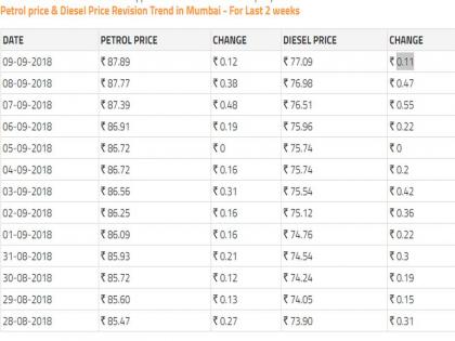 पेट्रोल, डिझेलच्या किंमतीत दिवसेंदिवस अधिकच वाढ होत असून मुंबईत पेट्रोलच्या दराने उच्चांक गाठला आहे. मुंबईत रविवारी (9 सप्टेंबर) पेट्रोल 12 पैसे प्रति लिटर आणि डिझेल 11 पैसे प्रति लिटर महाग झाले आहे. यामुळे मुंबईत आजचा पेट्रोलचा प्रति लिटर दर 87.89 तर डिझेलचा प्रति लिटर दर 77.09 झाला आहे.