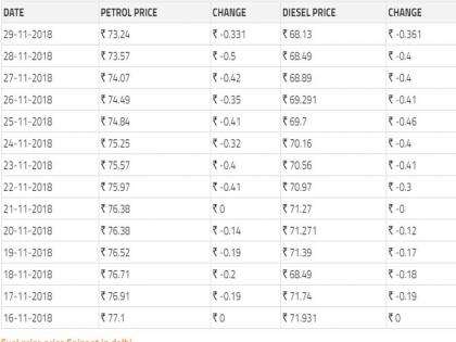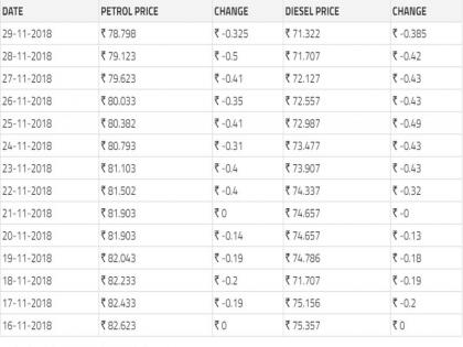 मागील काही दिवसांपासून पेट्रोल आणि डिझेलच्या दरात सातत्याने घट होत आहे. इंधनाची किंमत डॉलरचा दर व आंतरराष्ट्रीय बाजारातील कच्च्या तेलाचे भाव यावर निश्चित होते. दोन महिन्यांपासून कच्चे तेल महाग झाले होते. पण आता ते काही प्रमाणात स्वस्त झालं आहे. 6 ऑक्टोबरला पाच राज्यांमधील निवडणुकांच्या तारखा जाहीर झाल्या. निवडणुकांचा प्रचार ऐन रंगात असतानाच, तेल कंपन्यांनी 18 ऑक्टोबरपासून पेट्रोल-डिझेलची दरकपात सुरू केली आहे. यावरून सरकारी तेल कंपन्यांची निवडणुकांना डोळ्यासमोर ठेवून दरकपात केल्याचे दिसून येत आहे. निवडणुका संपताच डिसेंबरात इंधनाचे दर भडकण्याची भीती आहे.